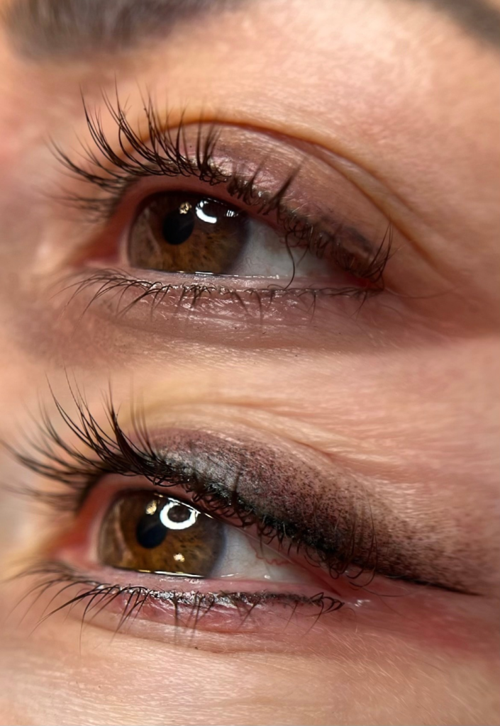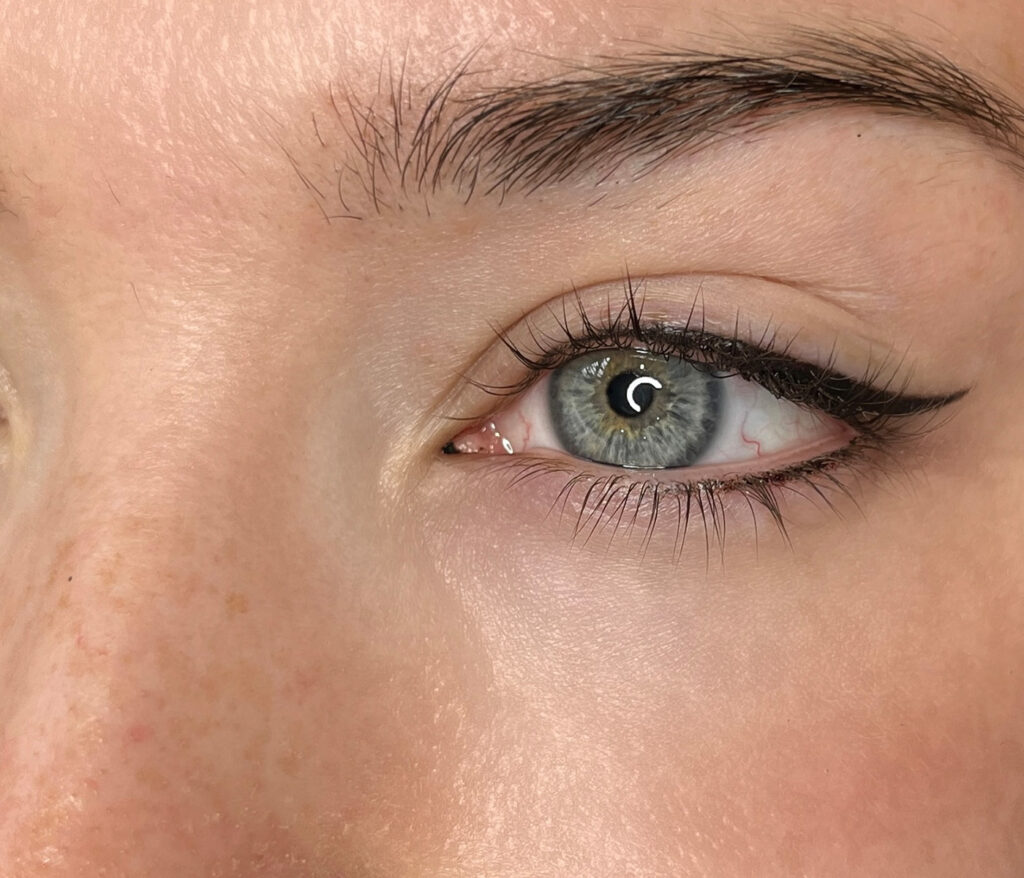 ‘Shadow’ liner is a technique that creates a shaded finish rather than a crisp, defined eyeliner. The process involves implanting tiny, pixellated dots of diluted pigment across the lid, which once healed will diffuse into a soft, smudgy effect. This style is perfect for those who want visible eyeliner with a softer, more subtle finish, and it’s especially great for hooded eyes. Density and colour can be built up to the desired finish.